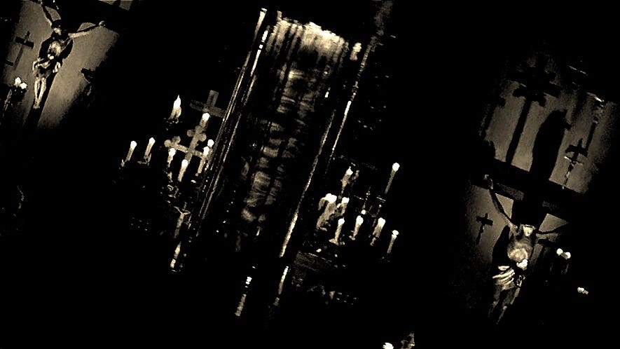 I laid him near the old research door, too scared to bring my father closer to the altar. Even then, I didn’t dare look down the corridor where the darkness moved on its own. The place where I’d first seen Him.