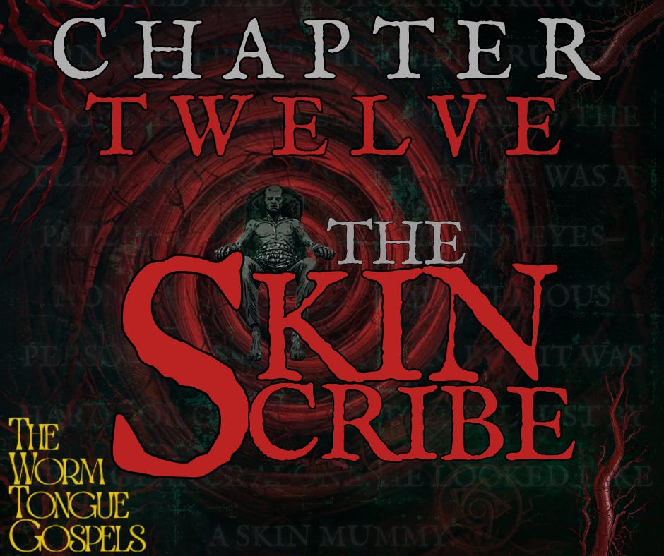 He turned to the sheet of flesh on the desk, its surface trembling as if aware of what was coming. With a single, elegant stroke, the Scribe began to write in Christian’s blood. Each letter burned into the skin, glowing faintly before sinking deep into the tissue.